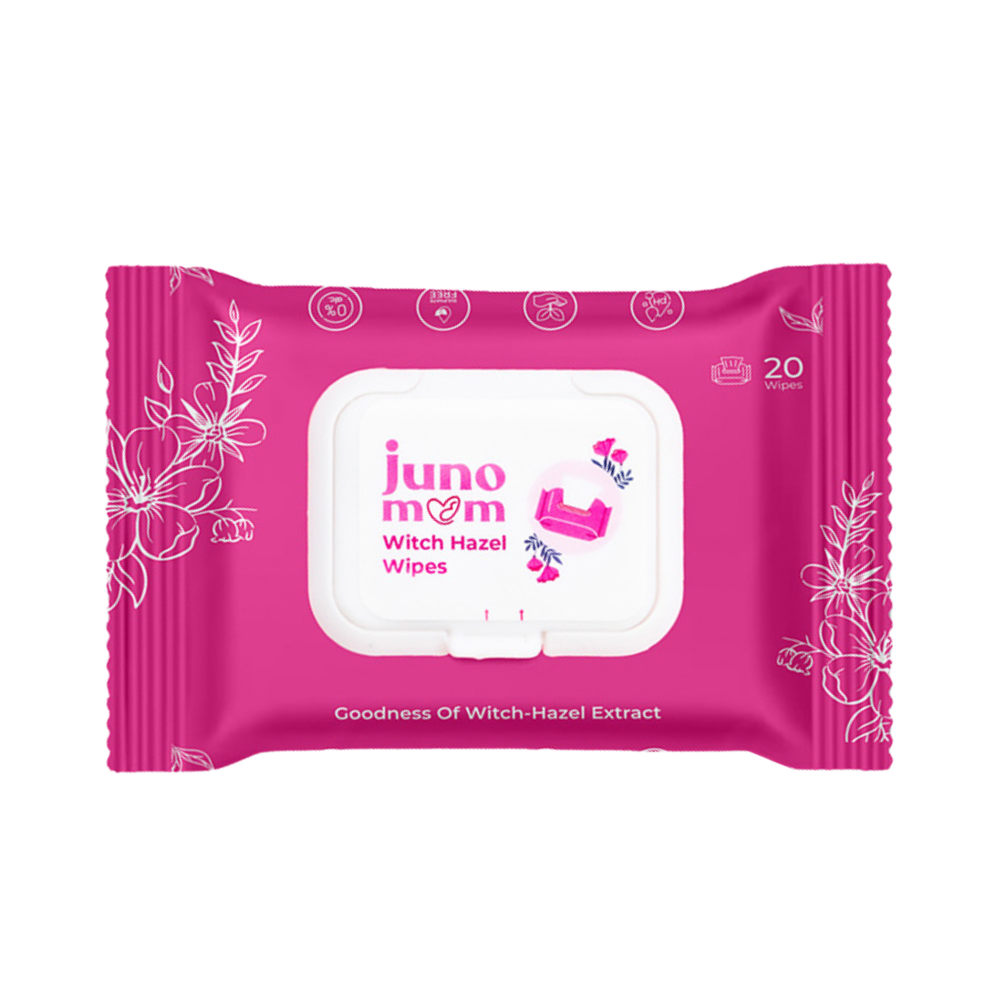 Using toilet paper after childbirth can be harsh on your tender vaginal and perineal area. These soft, pre-moistened wipes are infused with calming witch hazel to cleanse and reduce irritation. Gently pat dry your vaginal area with the wipes after using our Portable Handheld Bidet. You can also use the Witch Hazel Wipes to soothe any discomfort down there. Juno Mom’s Witch Hazel Wipes help reduce swelling and soothe sore spots around the perineum. Witch-Hazel Wipes are a Postnatal kit essential for moms.
